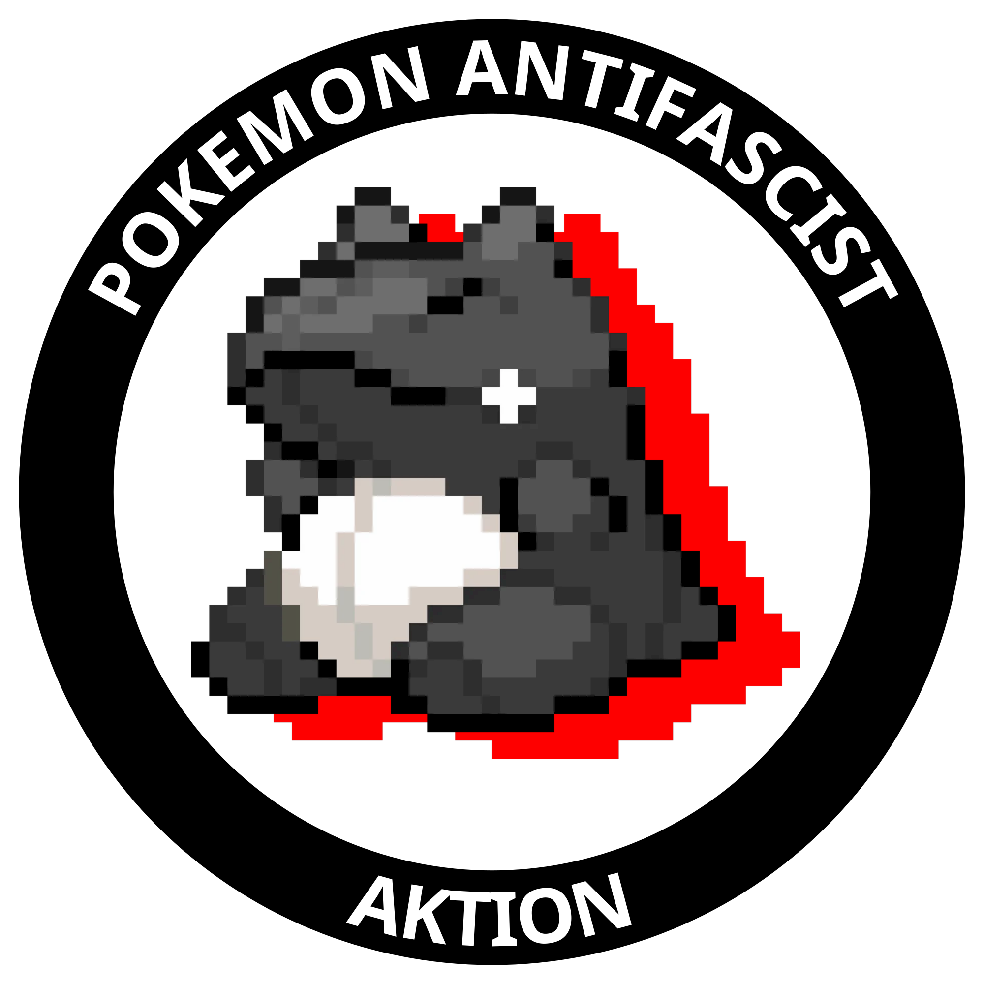 Sticker style Antifa avec un poupée "substitute" issue des jeux Pokemon, en noir avec une ombre rouge, entourée du texte "Pokemon Antifascist Aktion"