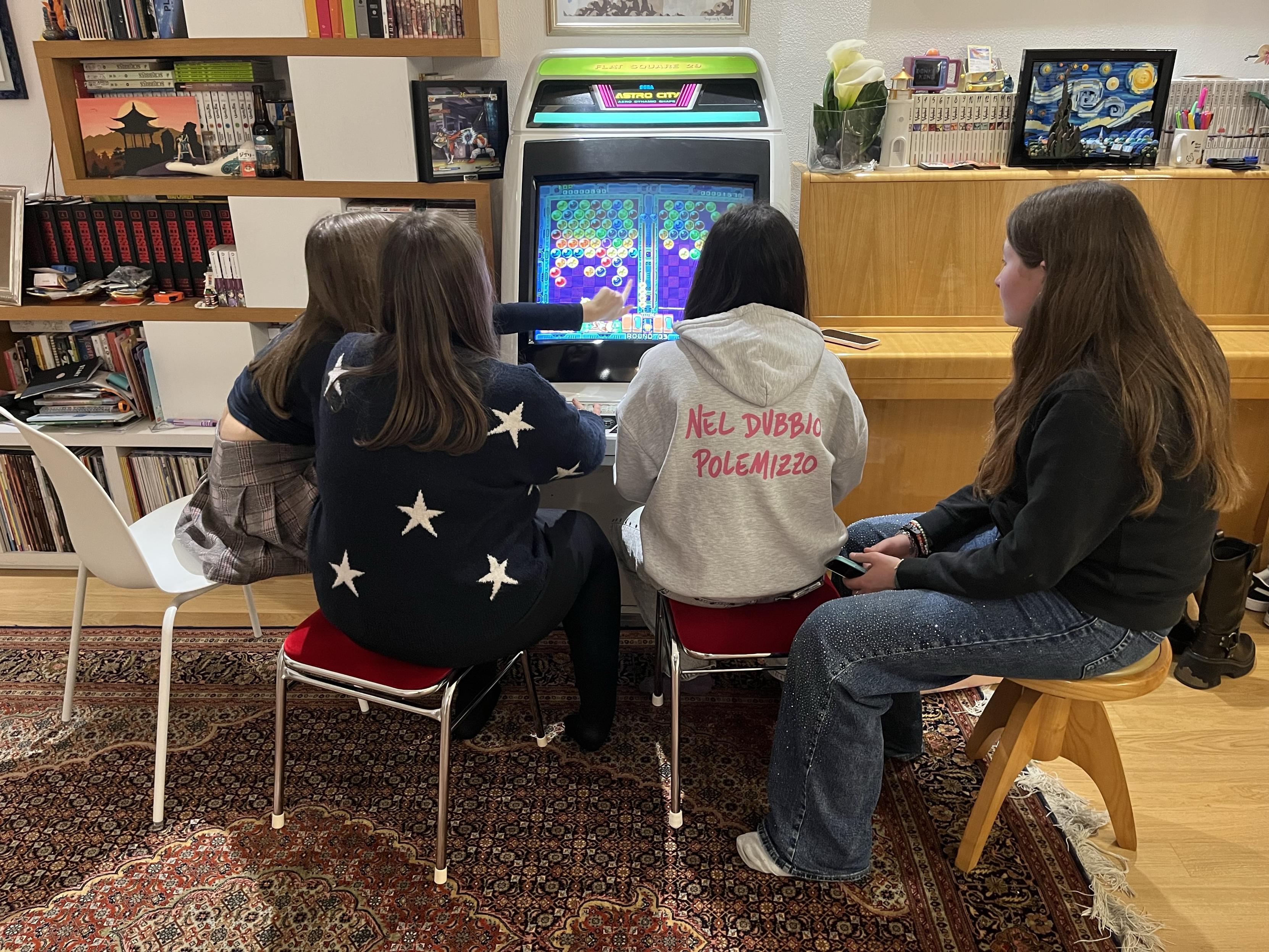 Il bello di avere un cabinato arcade a casa è che Elena e le sue amiche possono vivere parte delle dinamiche delle vecchie sale giochi, riunendosi attorno a un unico schermo. 💜 #retrogaming #retrogames #arcade #sega #crt